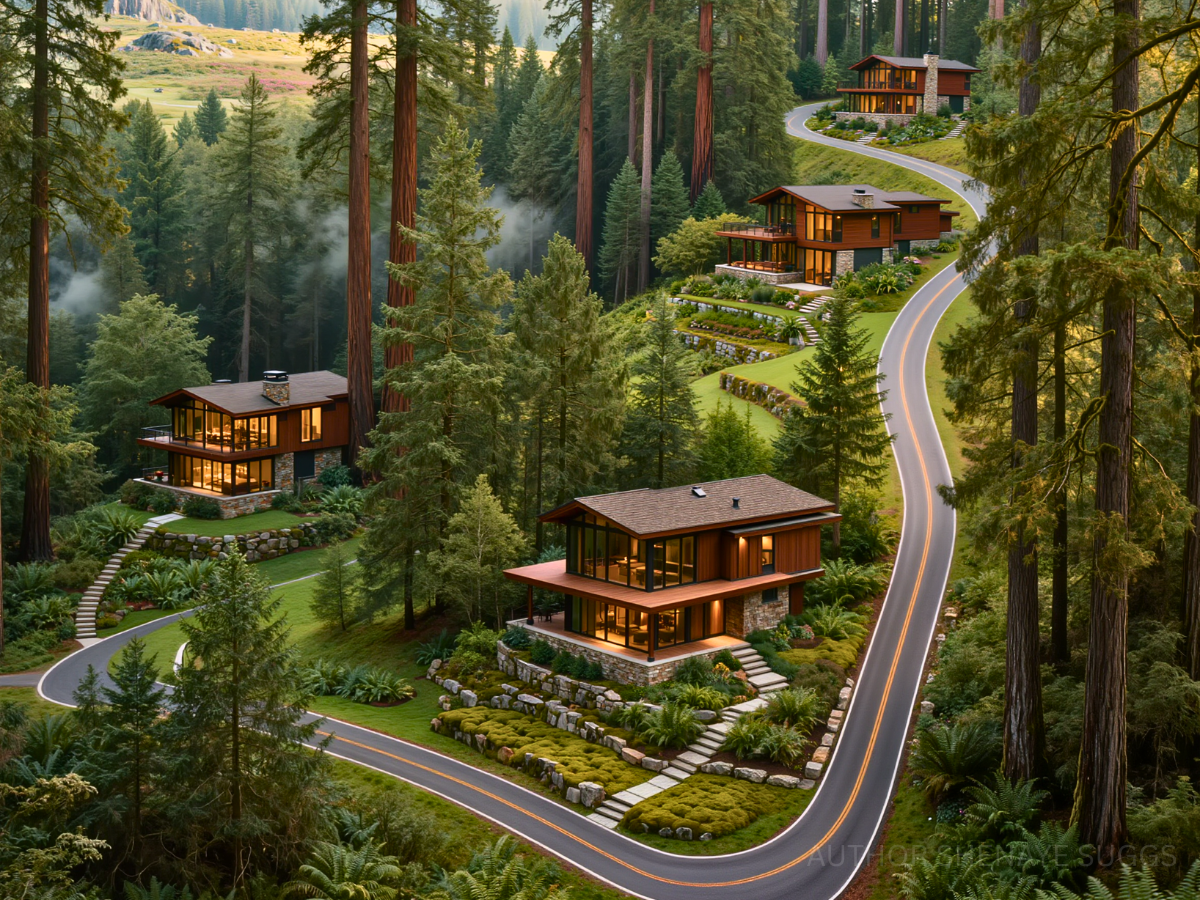 Pride Point: Harmony with the land. Firesong Glen was designed so the forest never had to move aside. Houses follow hill ridges, streams, and tree lines rather than cutting through them. The result is a neighborhood that feels less built than grown.