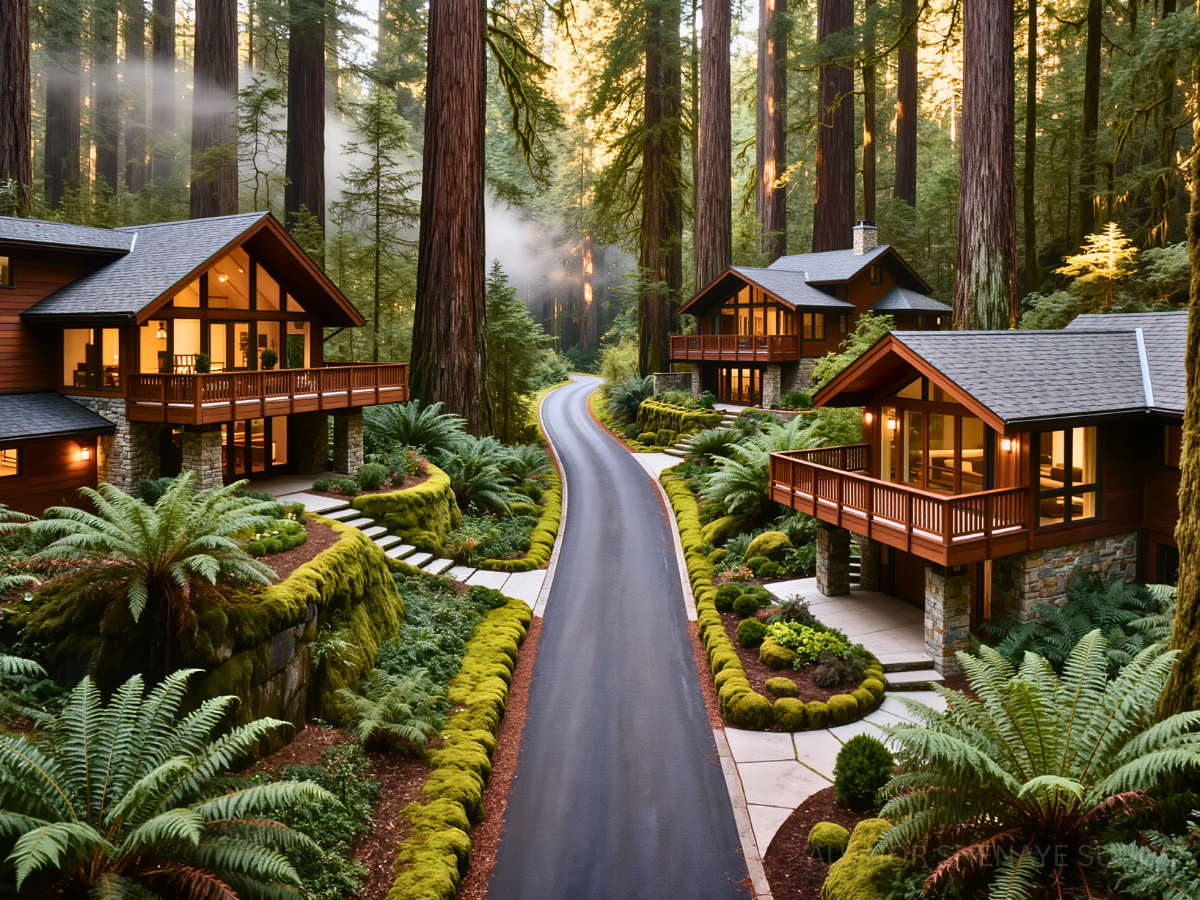 Vibe: Quiet flame. Firesong Glen is where the heat of Graymont turns inward. Less blaze, more ember. Homes nestle into the forest as if they’ve always belonged there, cedar walls breathing rain and memory. Nothing here competes with the land; everything listens to it.